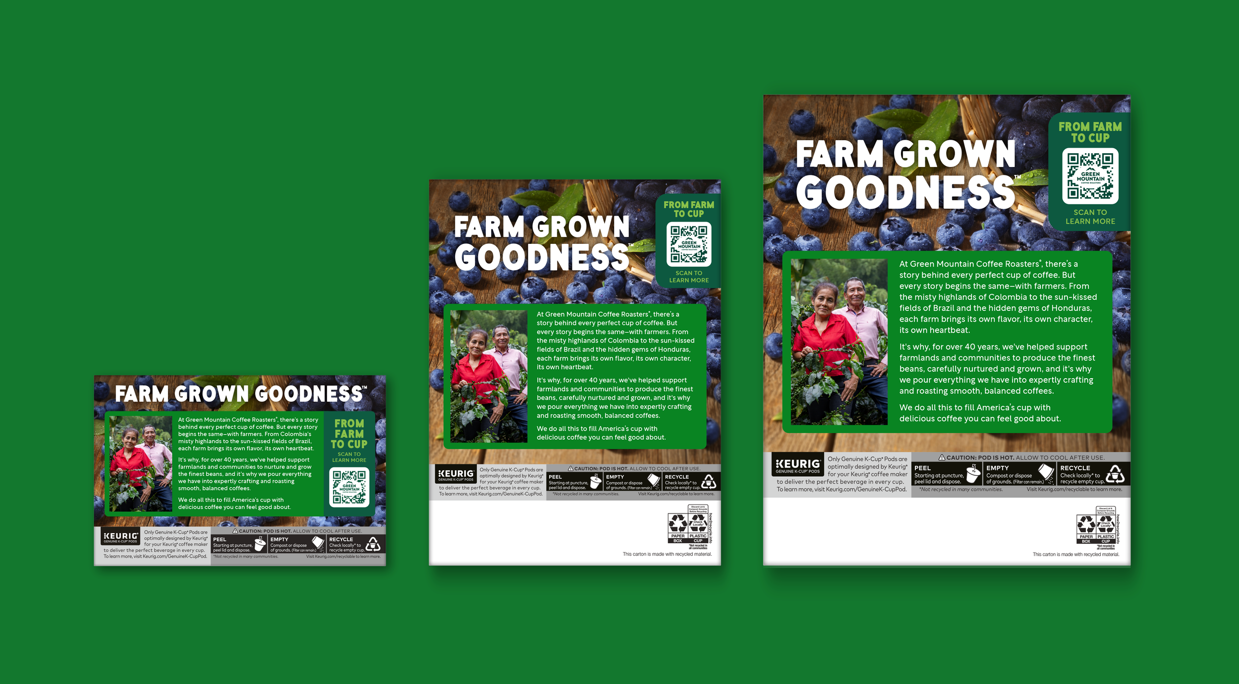 Refresh a heritage brand with a modern system that honors its origins. Updates included a FARM TO TABLE design approach with a warm, earthy palette, seasonal stamp system, and evolved packaging for core and limited-time blends. A redesigned back panel brings authenticity forward through real farmer stories, deepening brand trust and shelf impact.