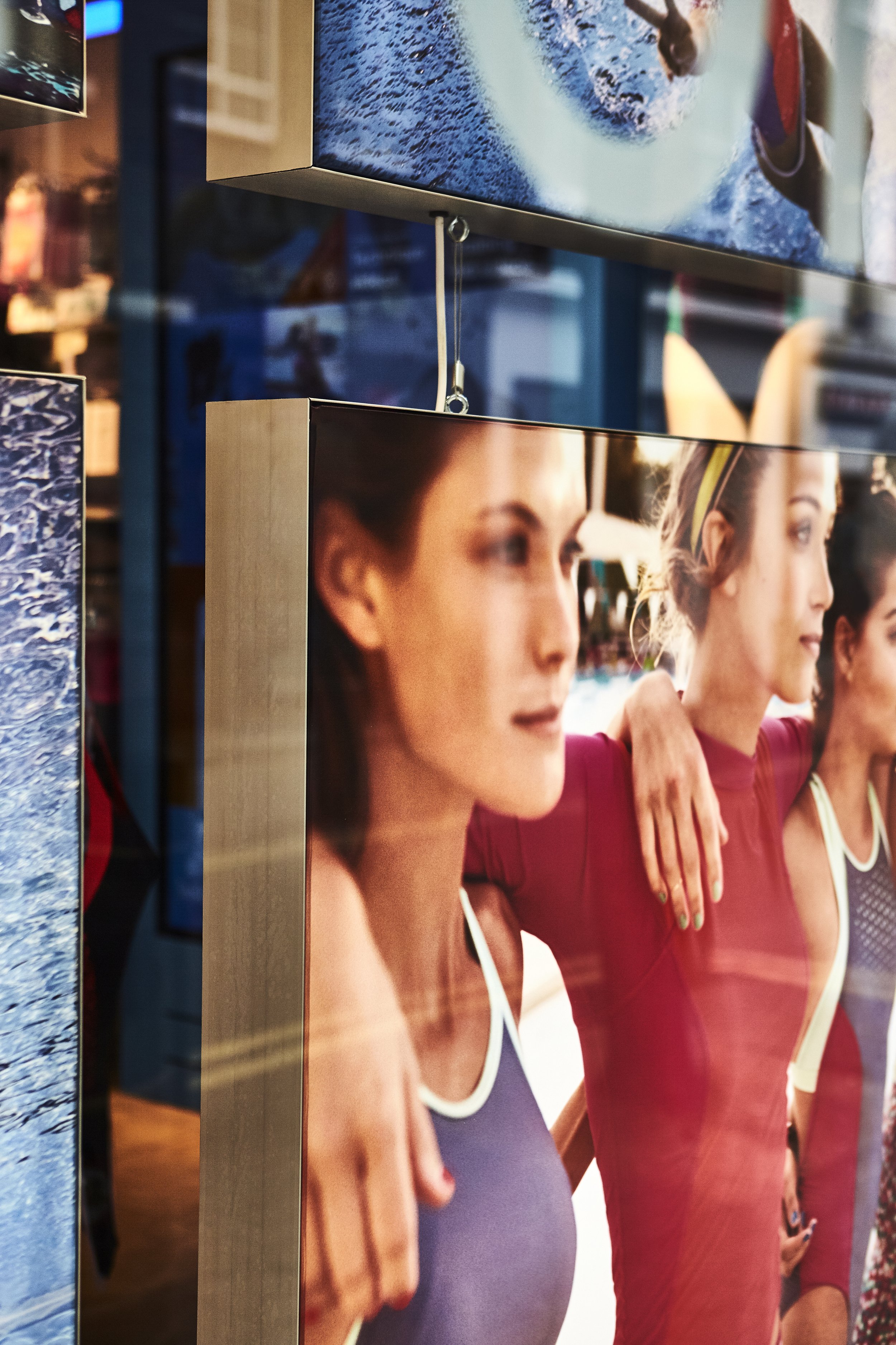 Goggles are key in every swimmers success. The Biofuse window celebrates Speedo’s new and improved goggle range which features improved fit, softer frames and smoother seals provide added comfort, resulting in extra confidence in the pool. By using 3D lettering we were able to hero the key campaign message against some powerful brand imagery. Tinted blue acrylic heads were produced for the product to be modeled on, framed with illuminated hoops to help grab attention and draw the eye.